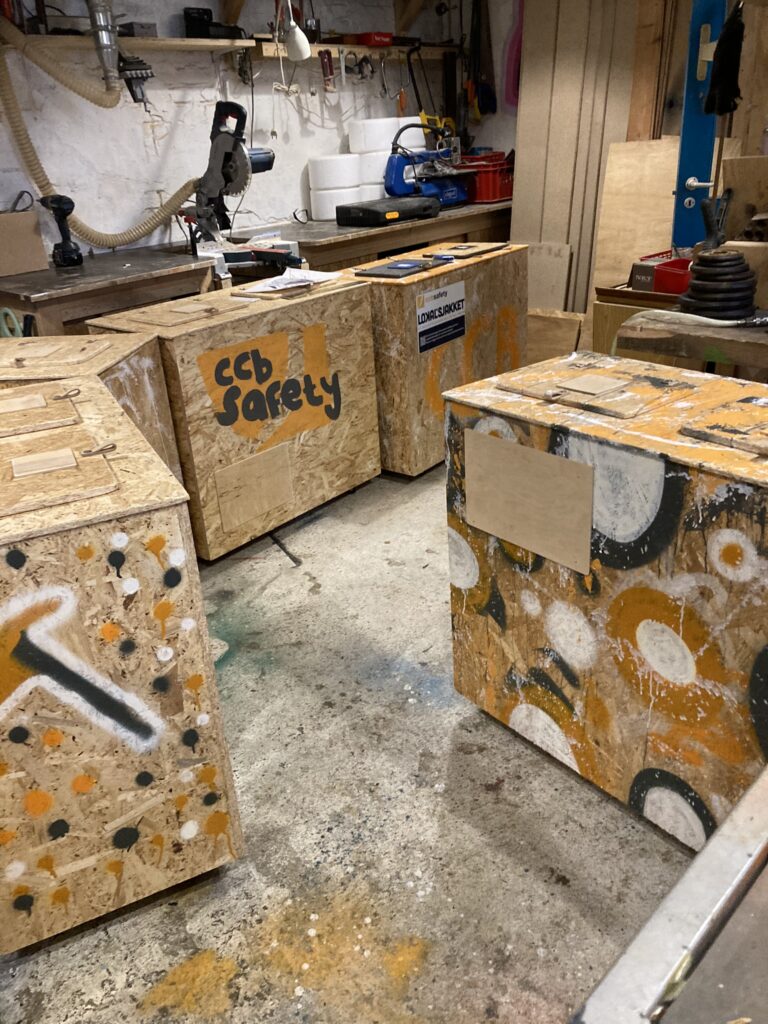 Vi bygger bokse ud af overskuds og rest træ, som vi får doneret af lokale virksomheder. Boksene udsmykkes efter aftale og ønske, og kan give unge i KORN18O en mulighed for at få deres kunst eksponeret.